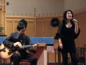 クリスマスソングを交えてスタンダードなジャズが夕暮れの教会に心地よい。
