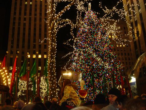 点灯式は、毎年11月末から12月初旬ごろ。翌年の1月中旬までツリーが楽しめる。ロックフェラーセンタープラザ (50STと5アベニューの間)