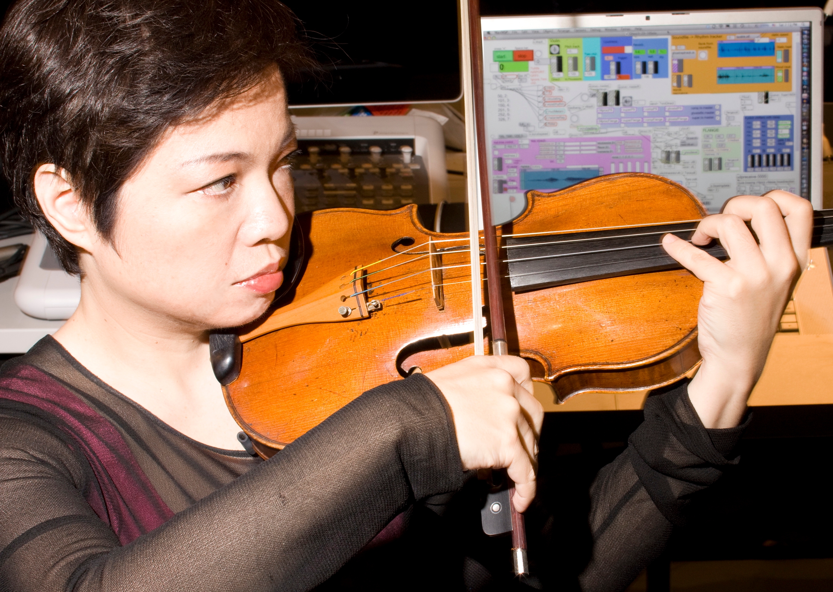 ボストン大学にいたころ、電子音楽のクラスで教授から「あなたも作曲しなさい」と、言われた。日本では演奏家と作曲家は別ものだと教えられたからか、その言葉は目からうろこが落ちた思いだった。ジュリアード音楽院に行くと、コンピューター開発に携わる人々との出会いから、木村自身もコンピューターを使った音楽を作るようになる。このあたりに物理との接点があるのだという。