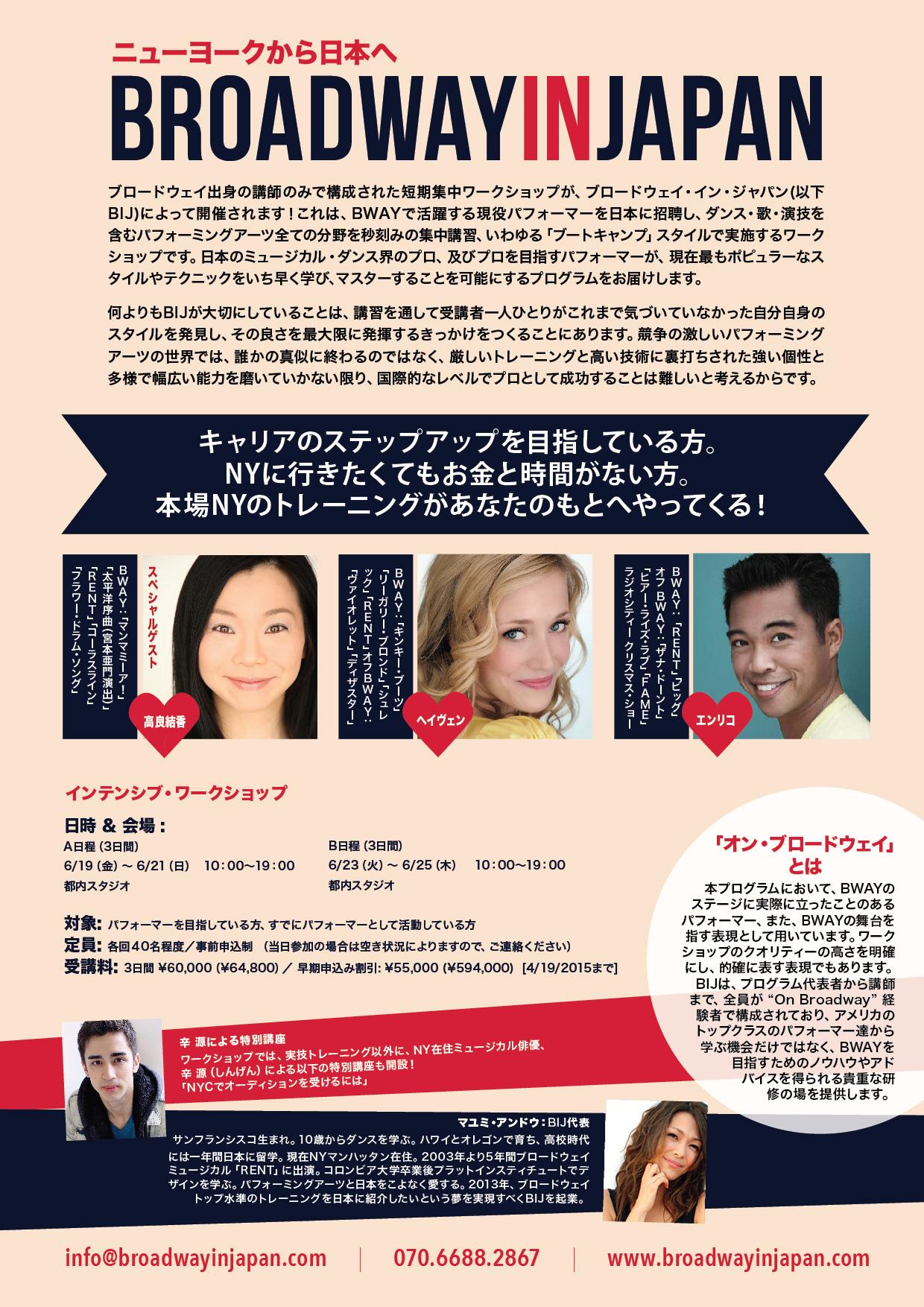 本場ニューヨーク、オン・ブロードウェイ・パフォーマーだけで構成された最強のプログラム! / BIJ provides professional, Broadway-caliber, performing arts education in Japan!