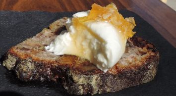 まずはCaffe Danteでブッラータチーズ(Burrata Cheese)をいただく。ちょっとだけ硬いパンの上にチーズがのってるのだけど、トロッとしていて濃厚。ハチミツとも相性がバッチリだ。ファイバーがたっぷりとれそうな、こだわりのパンも、かなり美味しい。老舗のイタリアンカフェで、名だたる音楽家や芸術家も通っていたという。セレブもたまに見れるらしい。