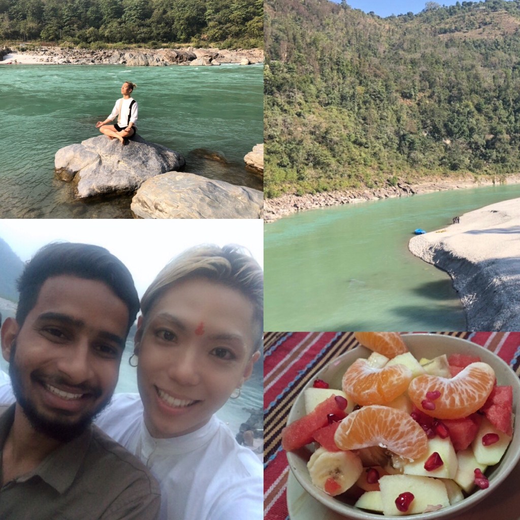 リシケシでは牛が神様として崇められていて、見たことのない黒いサルがいました。サルと牛と犬と人間が同じ場所で生きていて、毎日カレーを食べました。文化が違う、というよりも文明が違うという感じです。茶色いサルは人間の食べ物を取っていくんですけど、黒いサルは絶対に取らない。ガンジス川は汚いと聞いていたのですが、きれいでしたよ。川の中にもぐって出てきてもぐって出てくるというのを108回やったり。日本で知られているポーズをとるというのはヨガの中の一部でしかないということも知りました。ヨガには8段階あって、第一番目は「非暴力」です。自分に対しても相手に対しても、生きているものに対してすべてに非暴力。肉も魚も食べないビーガンの食事をしていました。ヨガのはじまりはシバ神によるありがたい教えなのですが、その後アクロバットヨガや、〇〇ヨガという風に、どんどん新しいものが生まれています。ヨガは宗教とかそういうものではなくて「自分自身の経験である」ということを教わりました。自分で実践して感じて、そこで自分が良いと思ったものが真実であり、それを大切にするべきだと。そしてその大切なものを大切な人にシェアすることが生きる意味なのかな、と。Yoga is experienceですね。自分の体と心を喜ばせると、魂が元気になる。人間は体と心と魂でできているそうです。