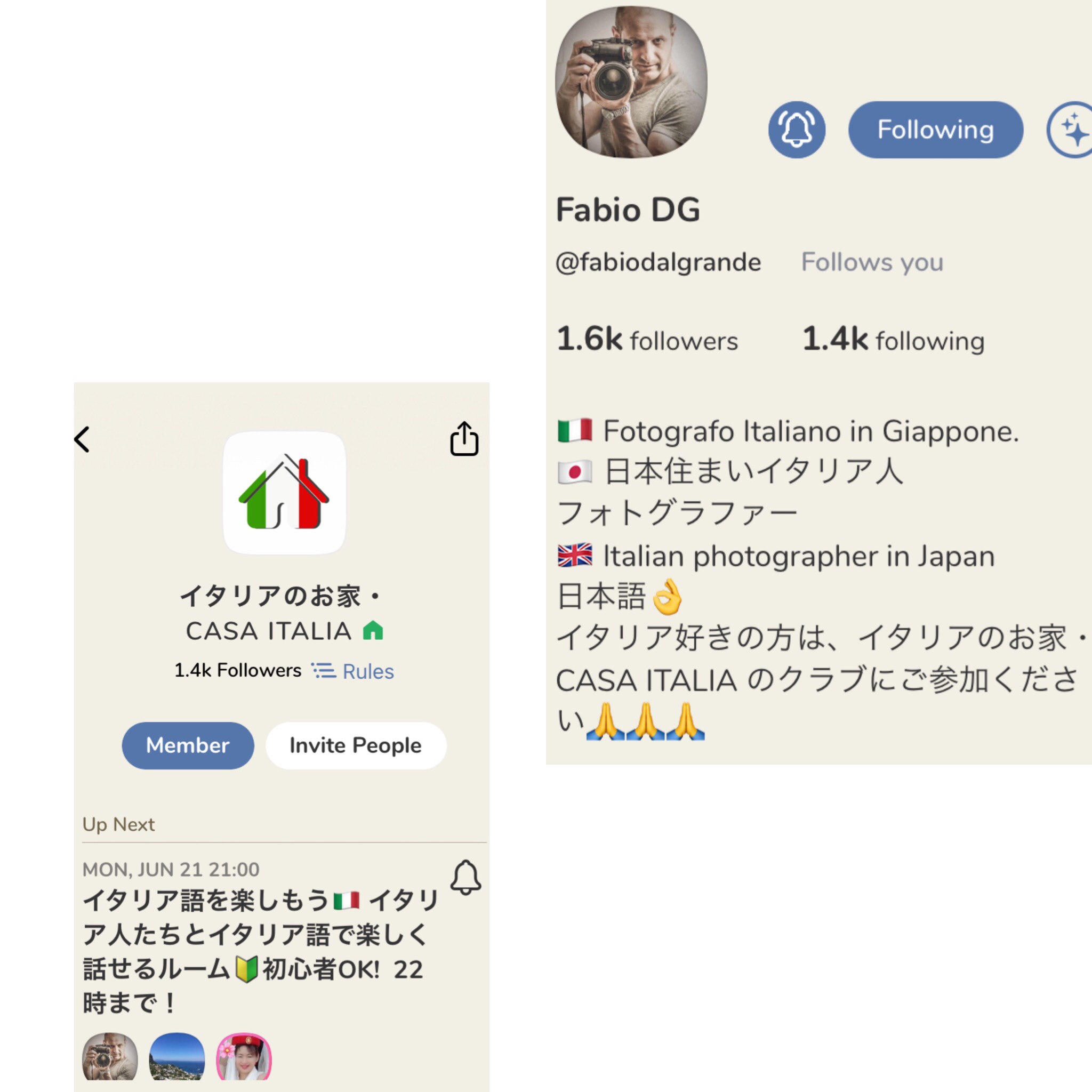 うんうん。クラブハウスは世界が広がりますよね。私もはじめて「Ciao!」と言ったときは心臓止まりそうでしたよ。(笑)