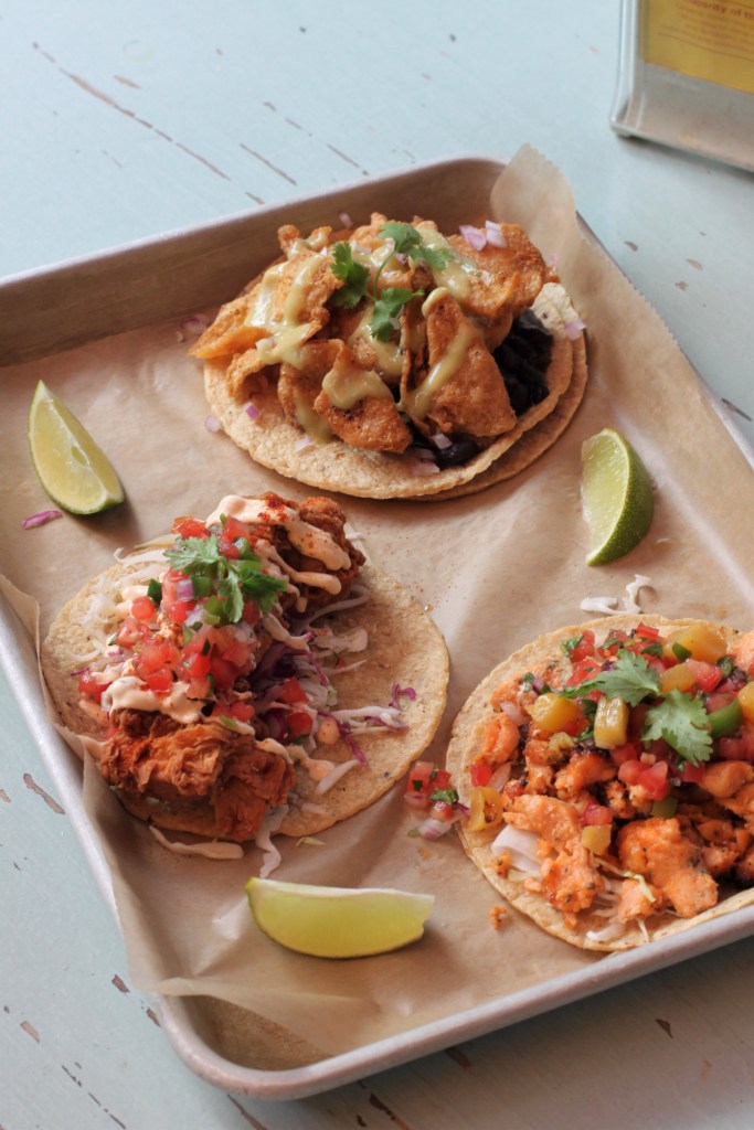 Tacos の方にはフライドチキン、サーモングリル、鶏皮などオリジナリティー溢れたメニューが並ぶ。人気メニューのフライドチキンはカリッと揚がった衣とふわっとジューシーな鶏肉が一緒に挟まれているキャベツとピコ・デ・ガヨ(トマトや玉ねぎを使ったフレッシュなサルサ)とマッチし後を引く美味しさ。一番興味のあった鶏皮のタコスはパリパリとおつまみ感覚でビールのお供にはもってこいだ。この日は売り切れで食べることは出来なかったが個数限定でマグロのお刺身の乗ったトスターダ(カリッと揚げたトルティーヤ)も出しているそうだ。こちらは人気が高く直ぐ完売になってしまうそう。