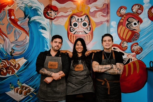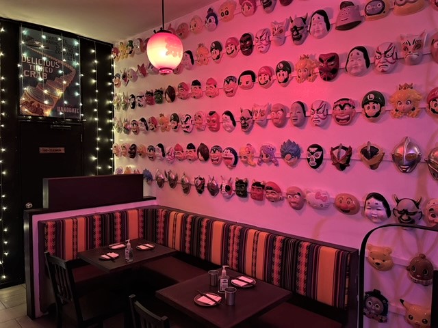 「最近できた Nikkei Izakaya に行こう。」Koko’s に足を運んだのはそんな知人の誘いからだ。Nikkei とはいわゆるペルーと日本のフュージョンだ。店に入るとお祭りの屋台で売られているお面が壁一面に飾られているのが目に入った。子供の頃大好きだった夏祭りの事を思い出しながらバーに向かう。壁にはだるまやペルーを代表する動物のアルパカなどがアニメチックに描かれていてそれを見ているだけで楽しい気分になる。バーに座ると奥の壁にゲゲゲの鬼太郎の絵が書かれている事に気づき益々ノスタルジアを感じる。そんな遊び心満載の Nikkei Izakaya Koko’s は2021年11月にブルックリンのウィリアムスバーグにオープンした。