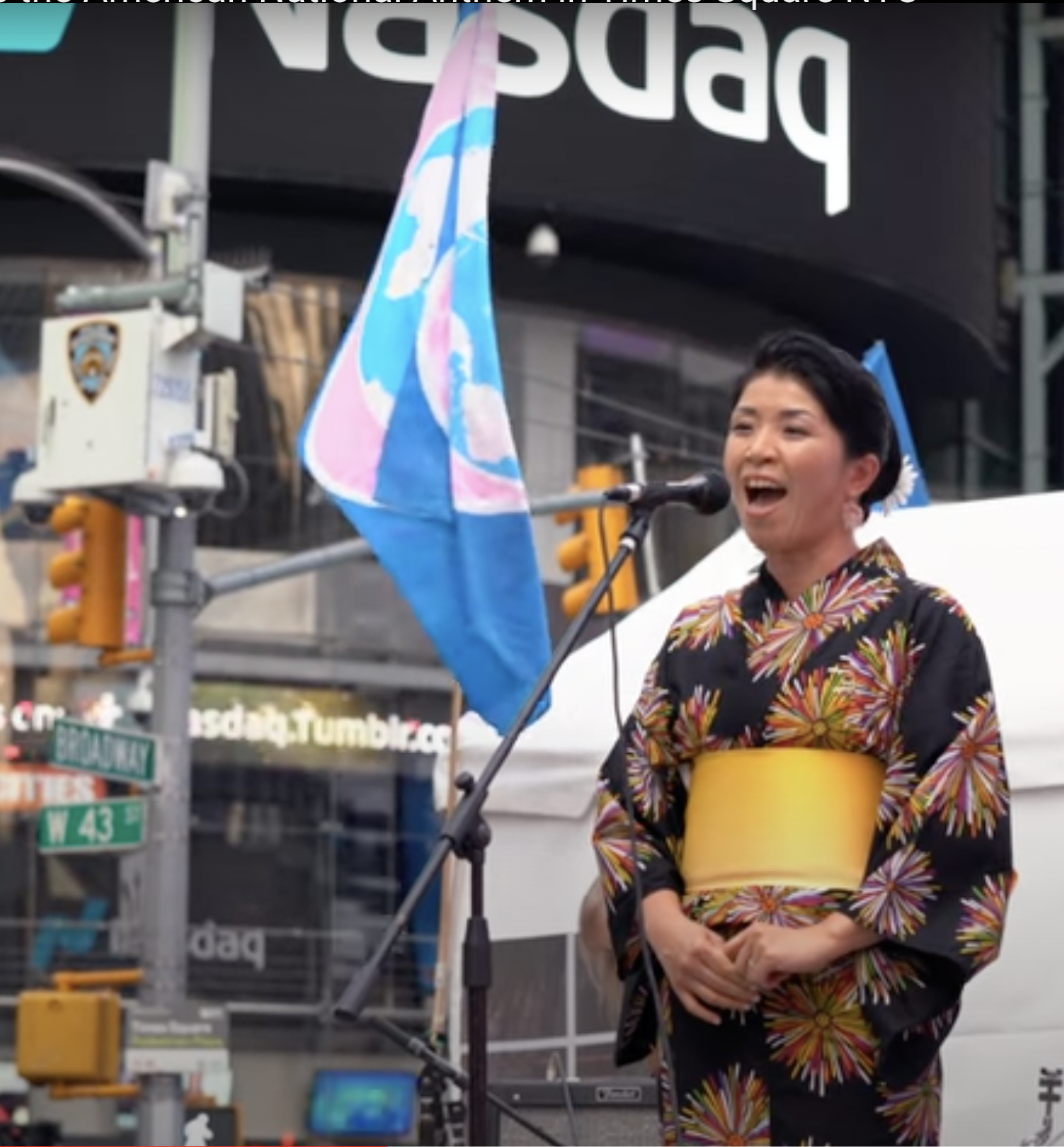 2018年 タイムズスクエアにてアメリカ国歌独唱