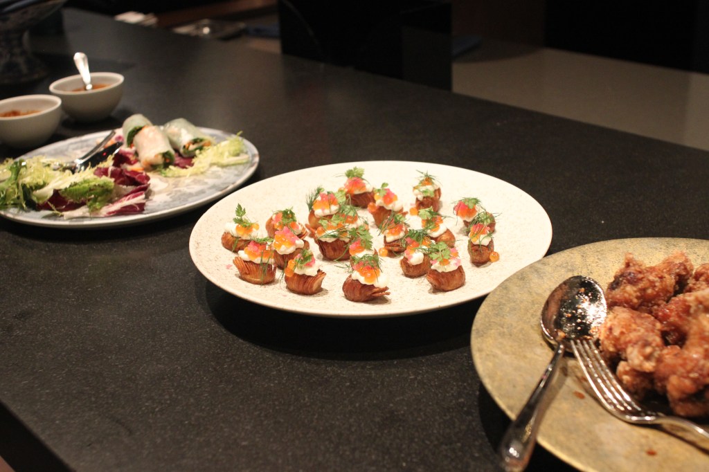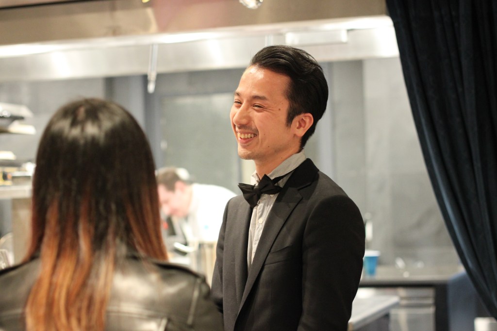 ミシュランの結果発表は11月7日。レストランに着くと最近渡米した Pastry Chef Rei が バルタザールのボトルからシャンパンを振る舞っていた。また主役の姿は見えない。店の中には次々と人が集まりシャンパンを片手に用意されたアペタイザーをつまんでいる。そして22時を回った頃、入り口から歓声が聞こえた。そこにはミシュランの星入りシェフジャケットをきた Chef Yuu、そして共演者達の姿が見える。いつもレストランで迎え入れてもらう側だが、この日は特別、シェフ達を拍手で向かい入れる。
