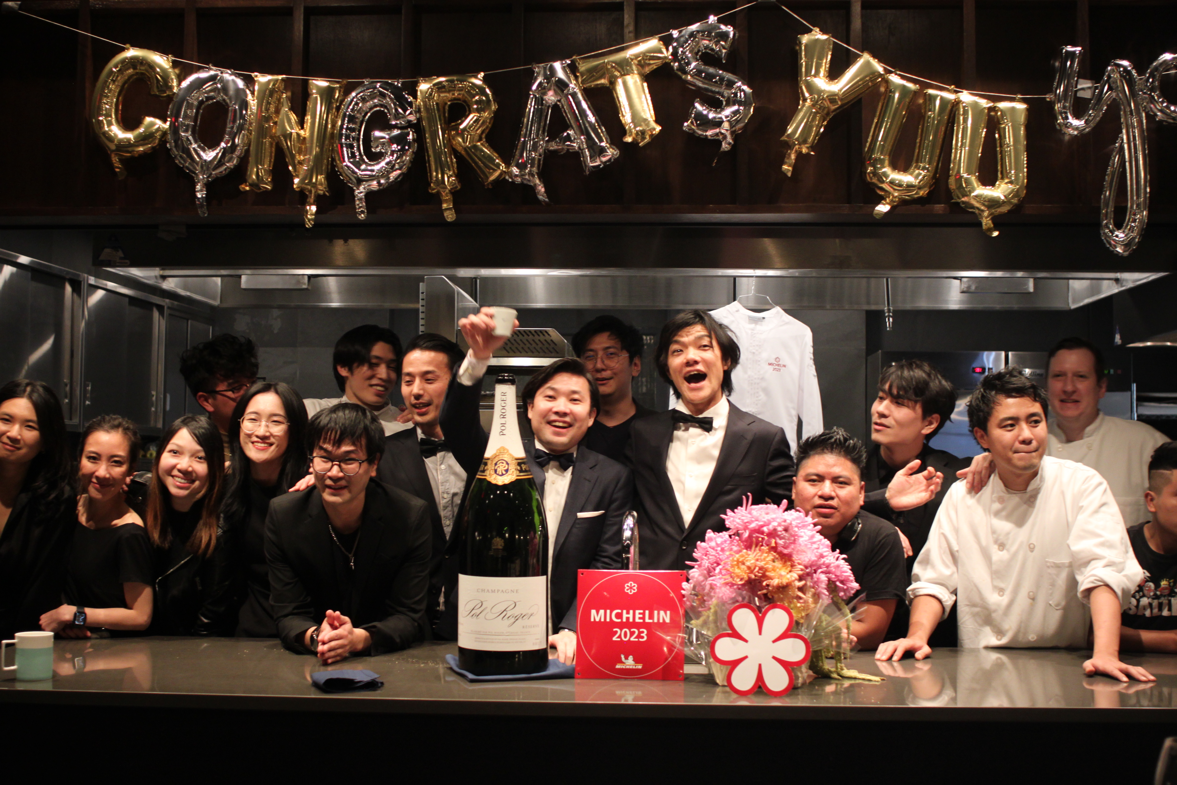 “これは皆さんに支えられてきたお陰です、この星は皆で取った星です。” そうスピーチをする Chef Yuu の周りには Chef de Cuisine Shuji Furukawa, Executive Pastry Chef Masaki Takahashi, そして Sommelier Akio Matsumoto という最高の共演者達が並ぶ。そして、この日を待ち望んでいた観客達は大きな拍手で彼らを包む。
