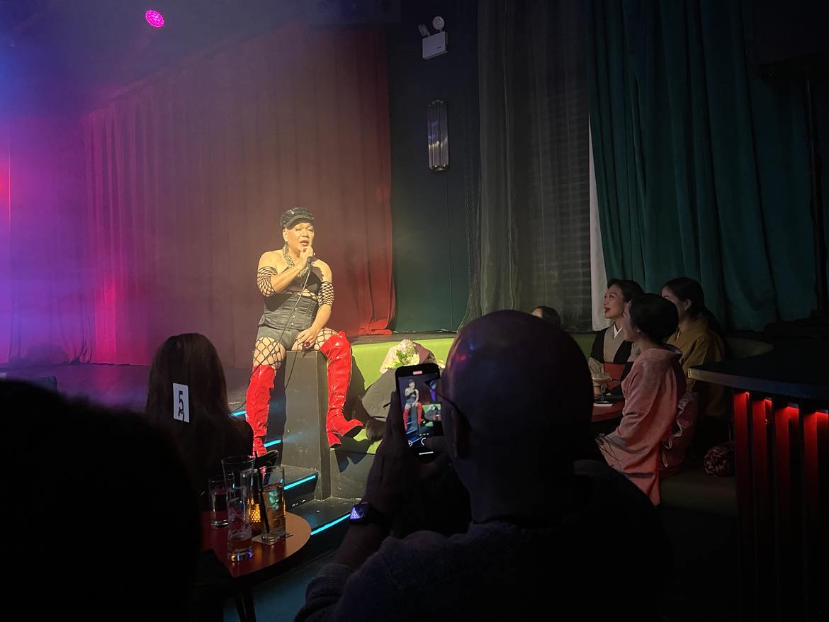 杏里に安全地帯のワインレッドの心を存分に歌いこんだところで、ブルックリンの会場へ到着。到着後に入った会場も、ピンク色の照明ですでに楽しそうな雰囲気。トシ・カプチーノさんのキャバレー・ショーには、抜群にマッチしているのでショーへの期待も高まった。