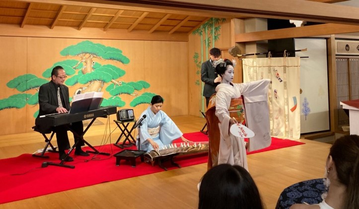 ありがたいことに、京都でも素晴らしい方々との出会いがあり、昨年2回開催して大好評だったイベントがあります。能舞台が設られたお部屋にて、琴とピアノとサックスの3パートから成るグループ【Trio Highwire(トリオ・ハイワイヤ)】が京都の舞妓さんと共演させていただくというもので、京料理を召し上がりながらご鑑賞いただき、舞妓さんにお酌してもらって一緒に写真を撮ったりもできる、とても京都らしい優雅なスペシャル企画です。今年は5月24日(土)と11月30日(日)に開催予定です。