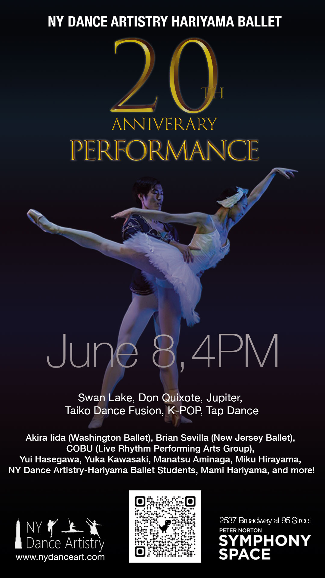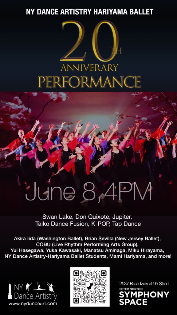 はい。大丈夫です。2025年6月8日(日)16:00から、Peter Jay Sharp Theatre(2537 Broadway at 95th St.)のシンフォニー・スペースで行います、【ハリヤマバレエスタジオ20周年記念公演】で皆様にお会いできることを楽しみにしております。